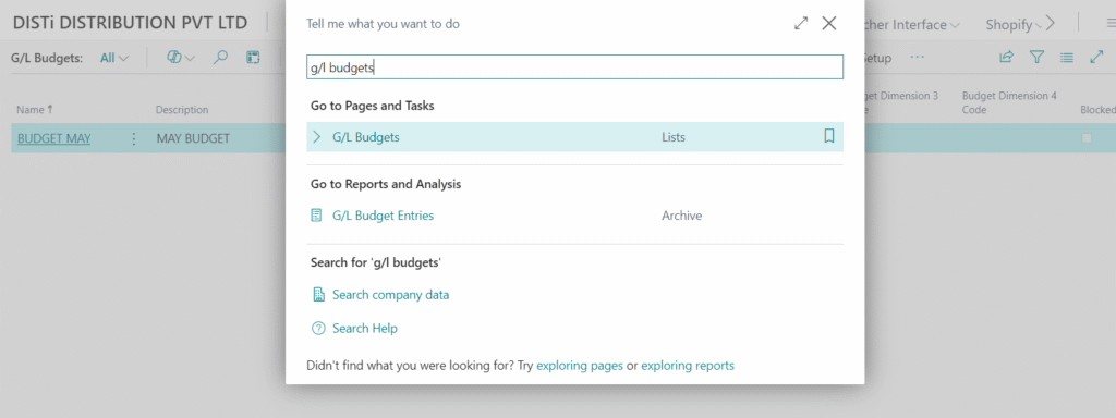 - After the Budget control setup, the user needs to add the G/L Budget.